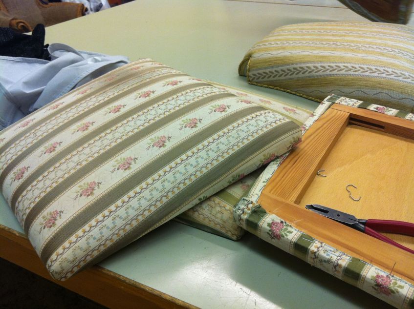 Tyget ska av och plattan i ramen bort. Detta gör jag för att jag vill lära mig göra en sadelgjordsbotten.