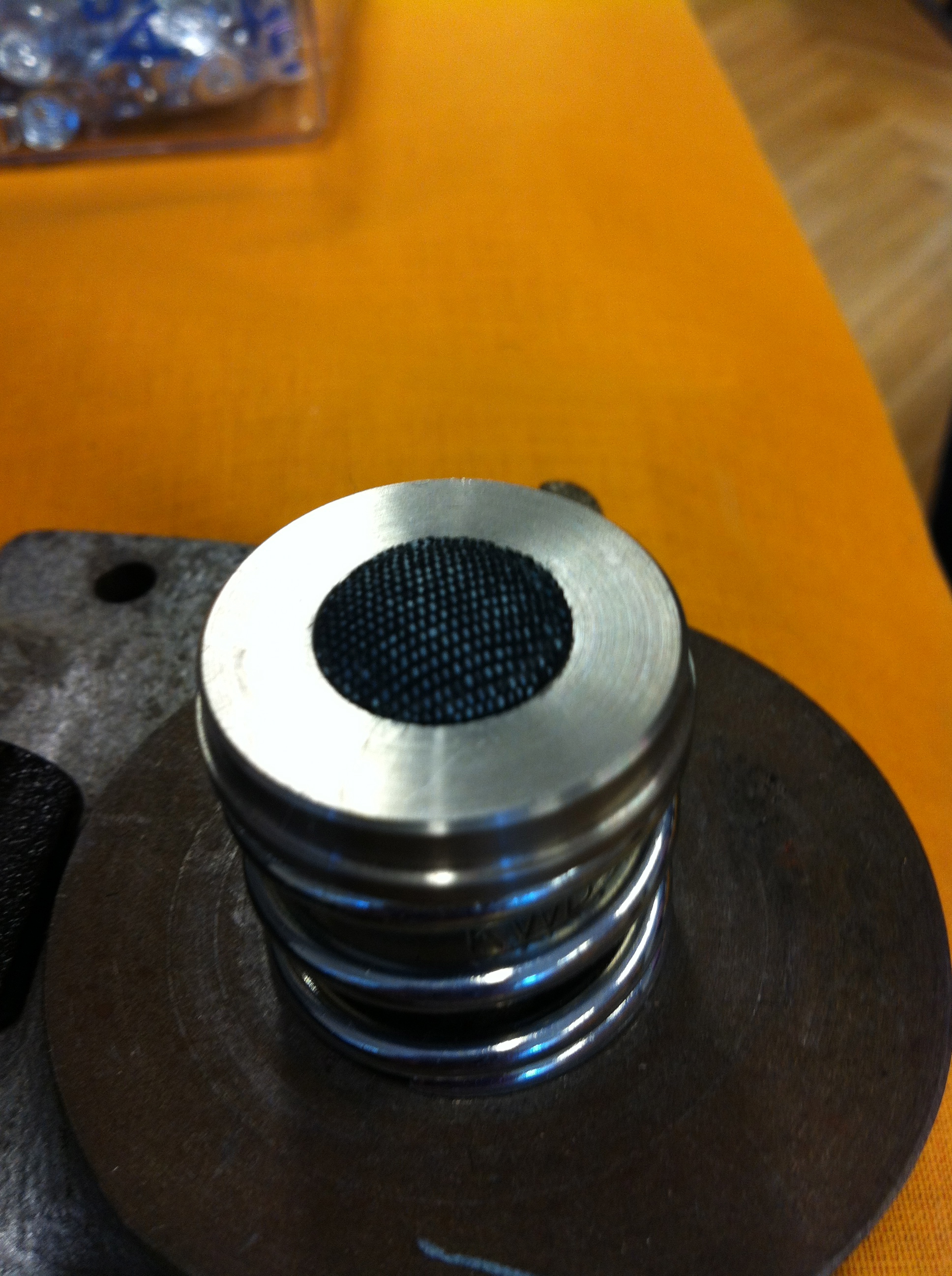 Närbild på den understa insatsen med den färdiga knappen.