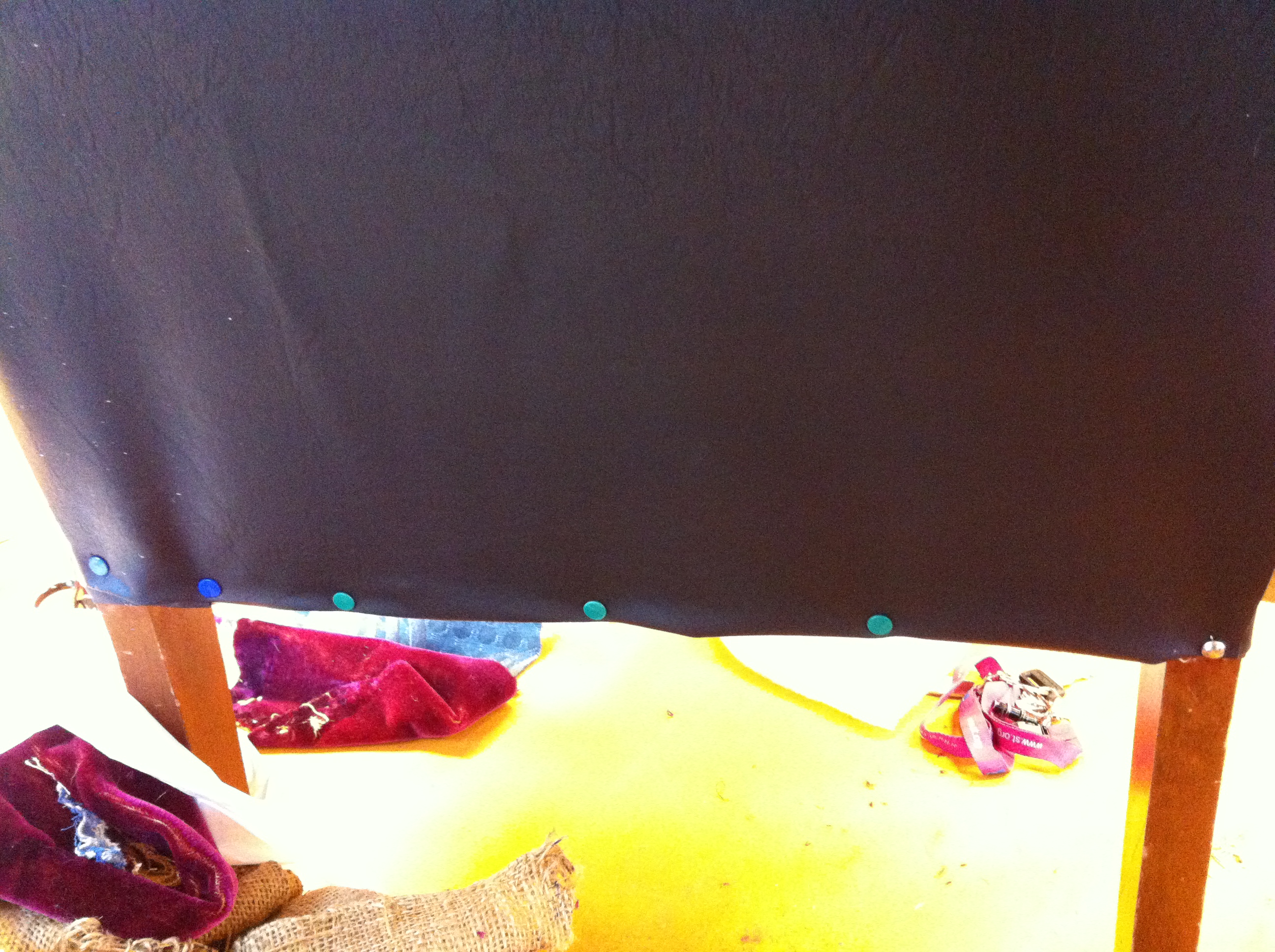 Den som “klädde om” stolen förra gången visste nog inte hur man gör – eller var lat. Kolla in häftstiften!