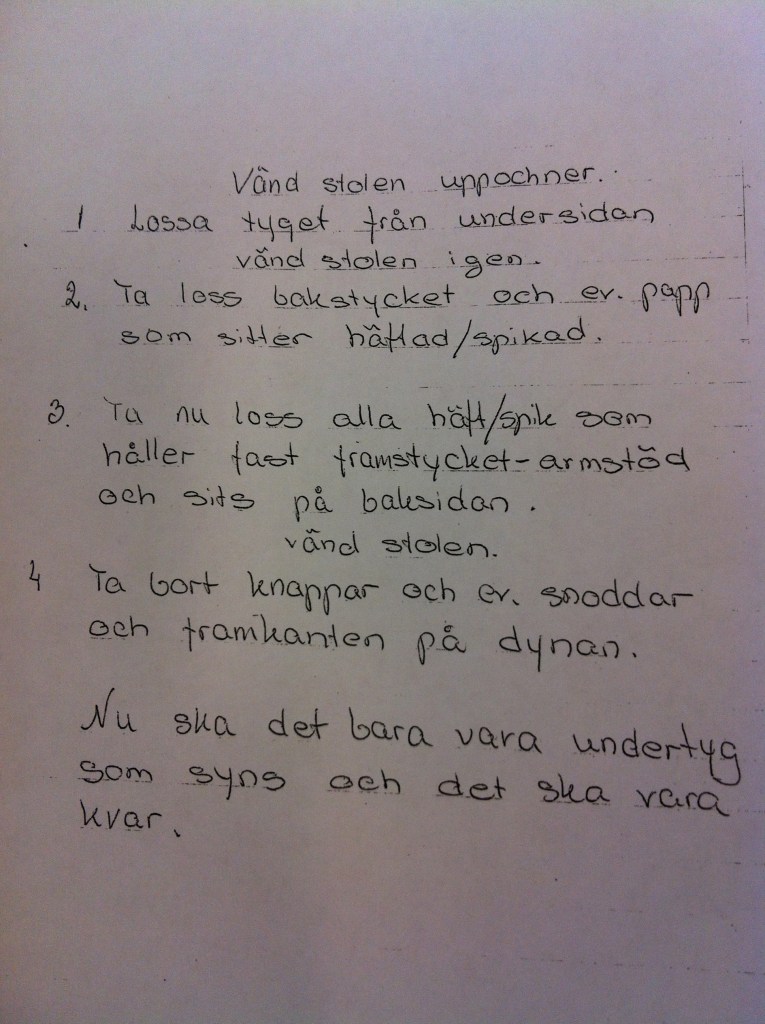 Beskrivning i vilken ordning man tar bort gammalt tyg. Omvänd ordning när nytt tyg sätts på.